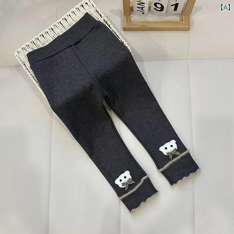子供服 パンツ 秋冬 女児 裏起毛 レギンス 厚手 あったか ベビー 一体型 中小童 3歳 8歳 100cm 110cm 120cm 130cm 140cm 150cm 粘纤 かわいい 小熊 ダークグレー