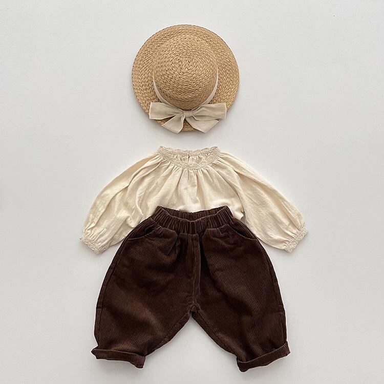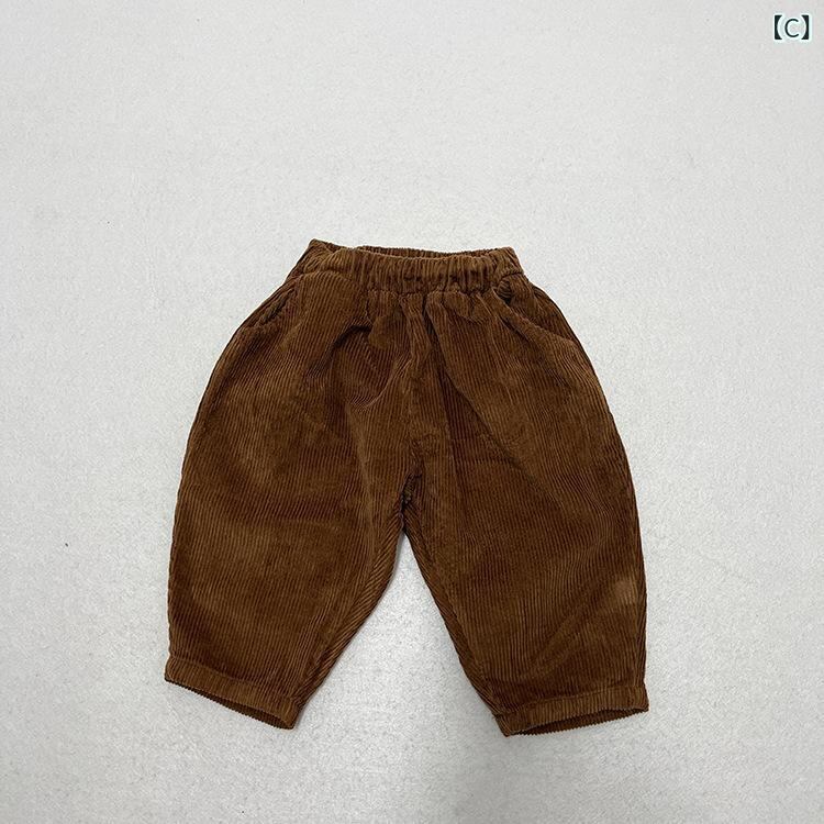 子供用 コーデュロイ パンツ 春秋 男女兼用 ゆったり レトロ カジュアル ロングパンツ かわいい ズボン 全3色 綿
