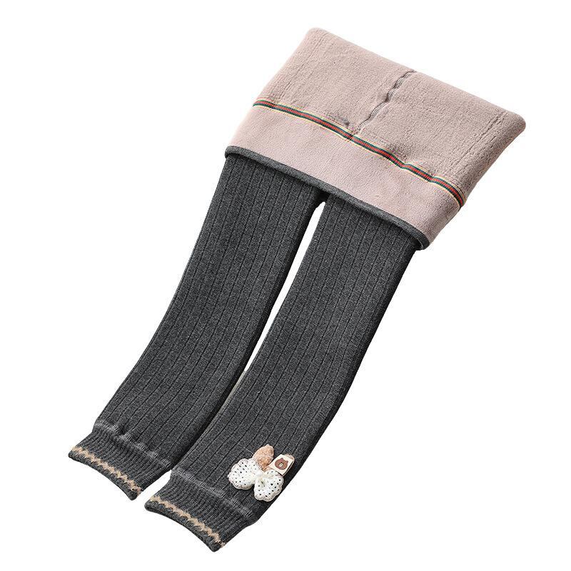 キッズ 女の子 レギンス 裏起毛 厚手 ストライプ ソックス 秋冬 9分丈 普段使い ガールズ 子供 ズボン グレー ブラック 燕麦色 ポリエステル