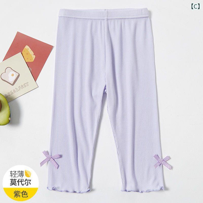 子供服 7分丈パンツ 女の子 モダール 薄手 アンダーパンツ 中 крупный 子供 パンツ 夏 普段使い かわいい 伸縮性 接触冷感 100 110 120 130 140 150 ピンク 白 紫 グレー 黒