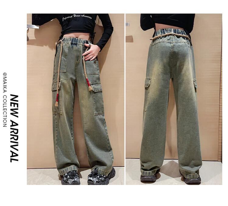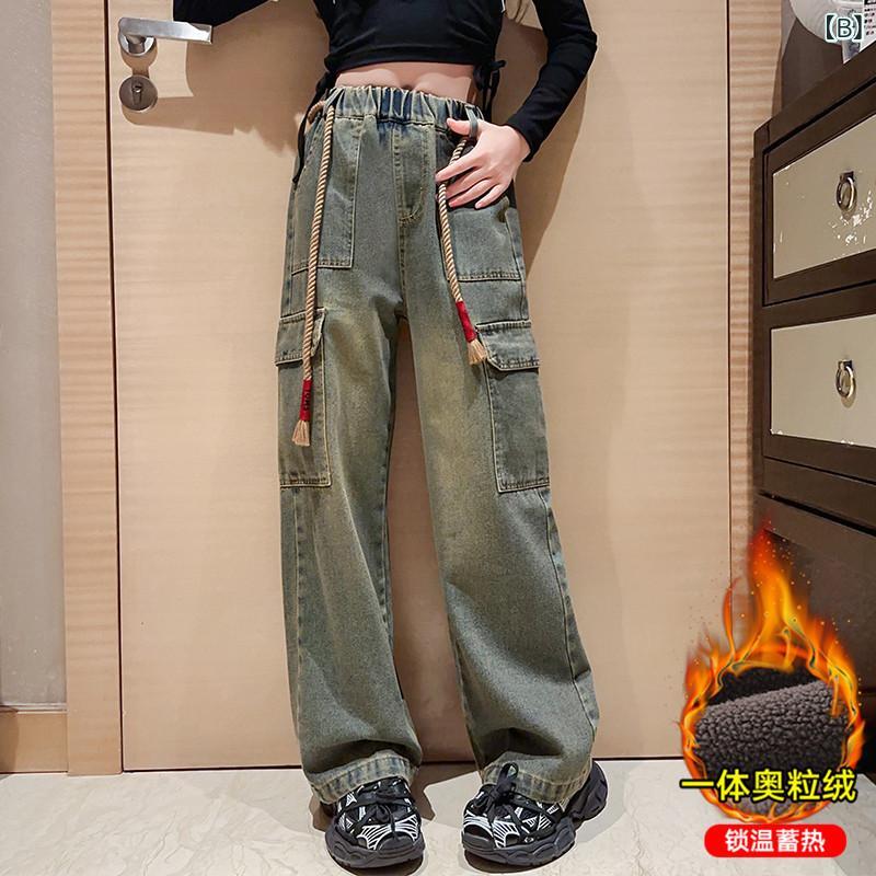 子供服 ジーンズ 女の子 ワイドレッグパンツ 春秋 中学生 ストレッチ デニムパンツ ゆったり ロングパンツ ガールズ ボトムス