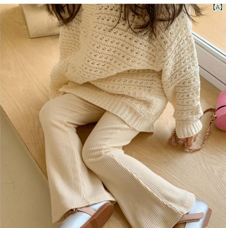 子供服 パンツ 女児 リブニット フレアパンツ 7分丈パンツ かわいい おしゃれ ミドルウエスト コットン 無地 ベージュ コーヒー ブラック 90 100 110 120 130