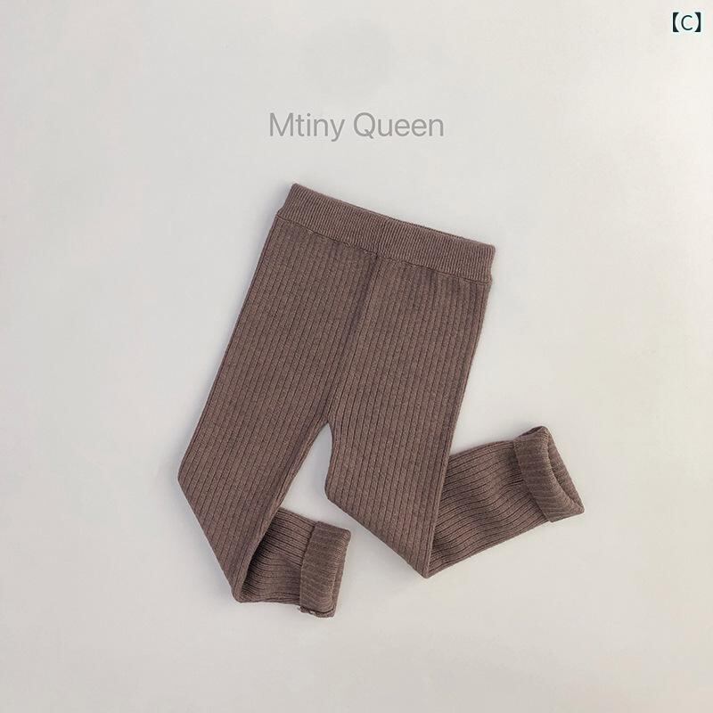 子供服 ニットレギンス 男女兼用 ベビー 高伸縮 秋冬 綿 普段使い かわいい ストライプ ブラック ベージュ系