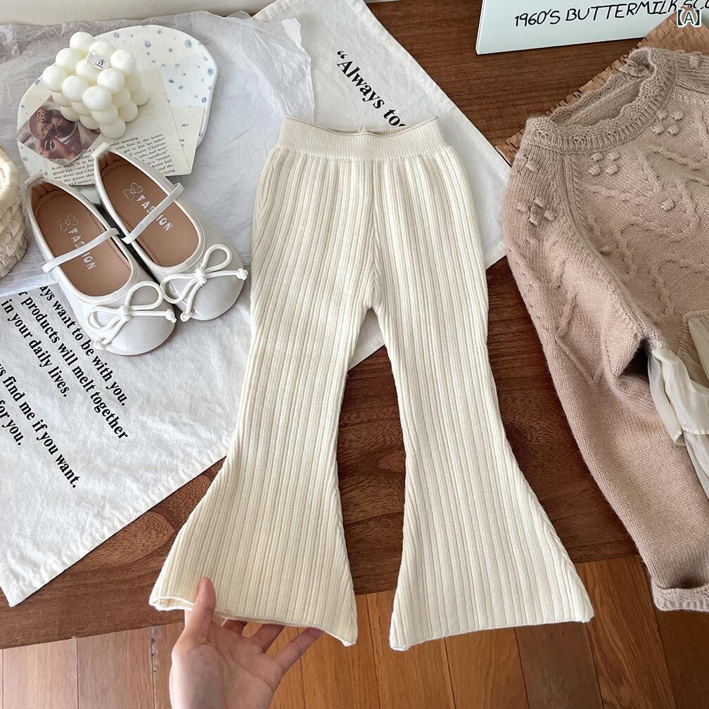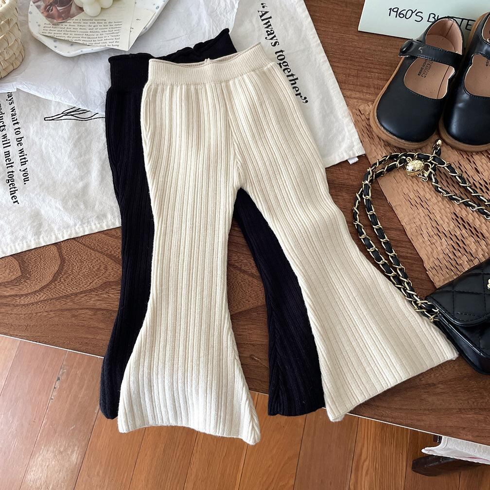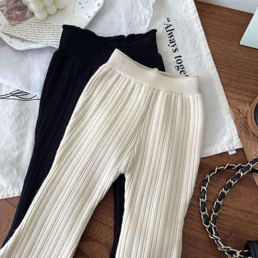 子供服 ニットパンツ 秋冬 女児 向け 厚手 ニット ズボン 女の子 用 パンツ 小学生 9分丈 スパッツ レギンス ミドルウエスト 伸縮性 かわいい ベージュ ブラック グレー ブラウン 90cm 100cm 110cm 120cm 130cm 140