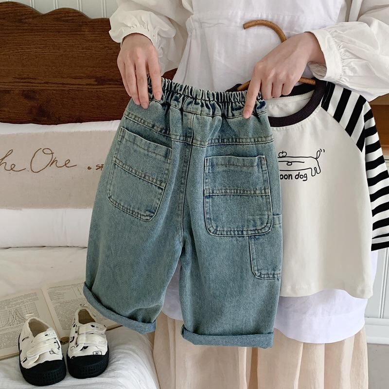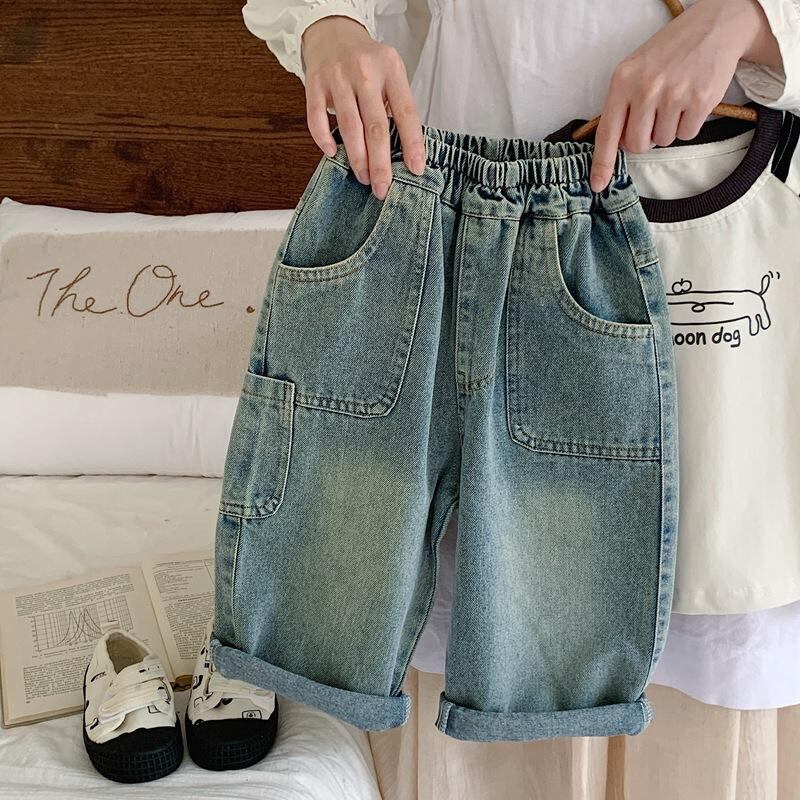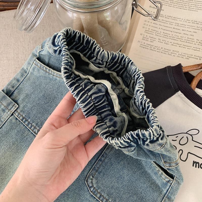 子供用ジーンズ パンツ ボーイズ デニム ロングパンツ 韓国風 コットン 普段使い レトロ加工 ストレート 80cm 90cm 100cm 110cm 120cm 130cm