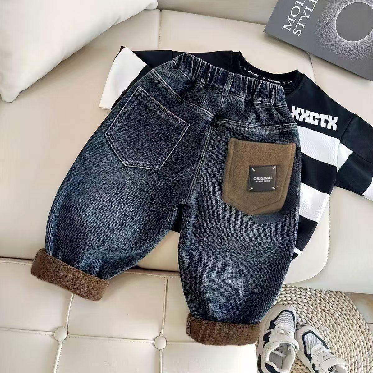 子供服 ジーンズ 男の子 裏起毛 デニムパンツ 冬用 暖かい ズボン ボーイズ ジーパン 厚手 高学年 普段着 通学着 秋冬