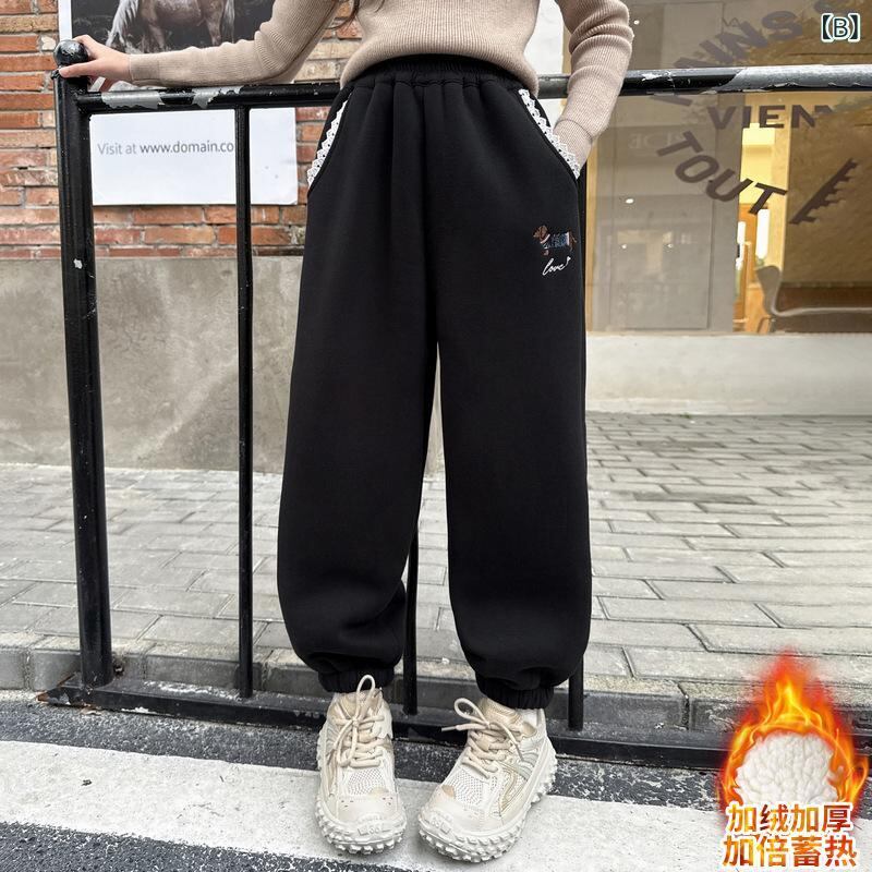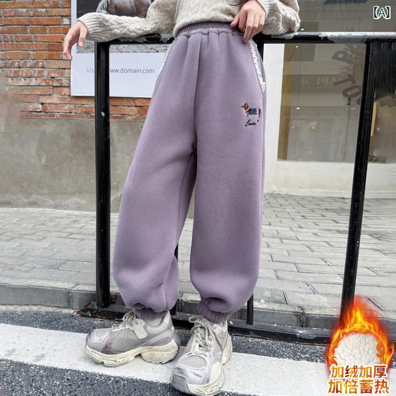 子供用パンツ 大童サイズ 裏起毛 スウェットパンツ 女児 ガールズ カジュアルパンツ 秋冬 普段使い スポーツ 部屋着 綿 紫 灰色 黒