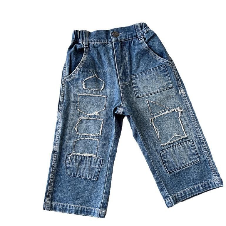 子供服 デニムパンツ ダメージ加工 ジーンズ ロングパンツ 男の子 女の子 ボーイズ ガールズ カジュアルパンツ スプリング オータム ブルージーンズ