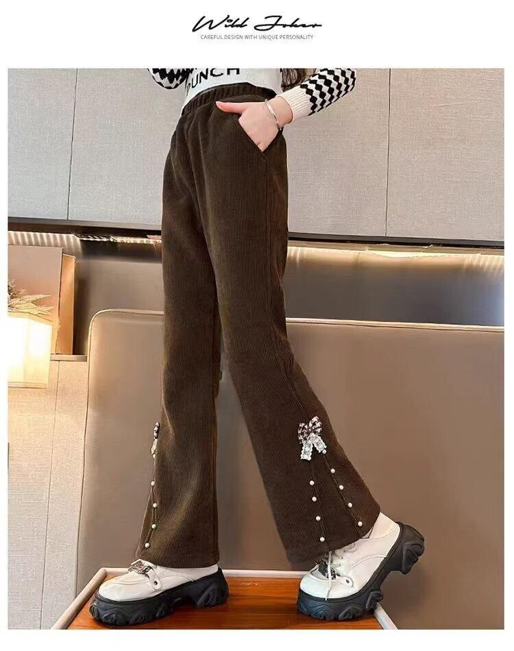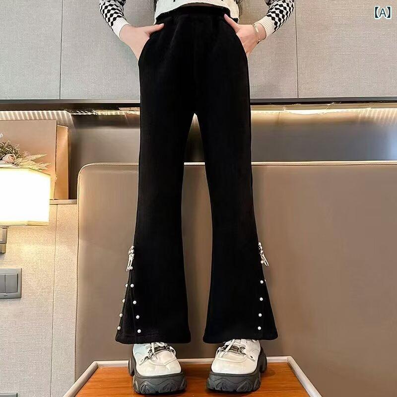 子供用 パンツ 女の子 秋冬 裏起毛 ズボン 冬 マイクロフレアパンツ 厚手 一体型 中大 детска полацетър ポリエステル 伸縮性