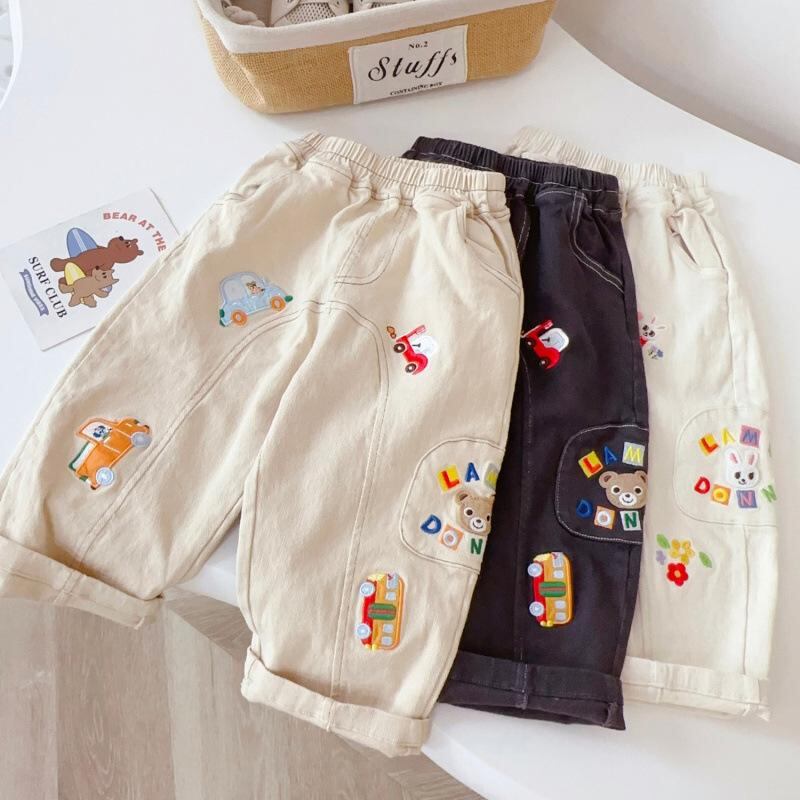子供用パンツ 男の子 女の子 ズボン 刺繡 カジュアルパンツ コットン ゆったり 動物柄 春秋 ミドルウエスト ベージュウサギ ベージュクマ ダークグレークマ 80 90 100 110 120