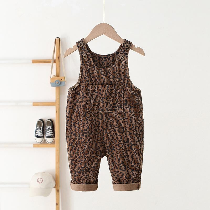 キッズ ベビー服 サロペット 韓国風 コーデュロイ オーバーオール 男女兼用 春秋 高腰 かわいい ヒョウ柄 80 90 100 110 120cm