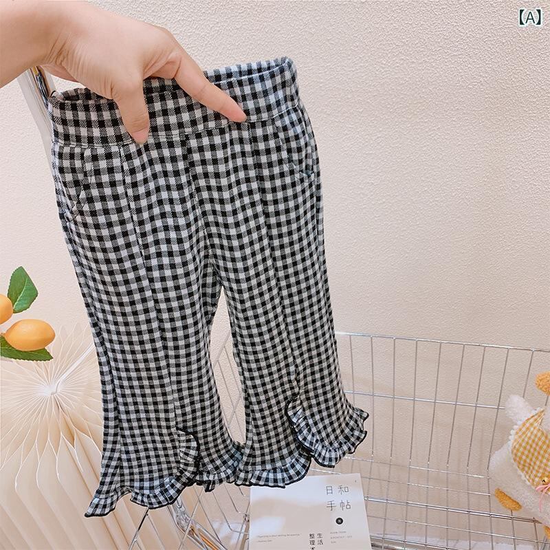 子供服 女の子 春秋 格子柄 パンツ スパッツ ズボン ストレッチパンツ 長ズボン キッズ ベビー 幼児 伸縮性 通園 通学 普段着 かわいい 黒白 格子