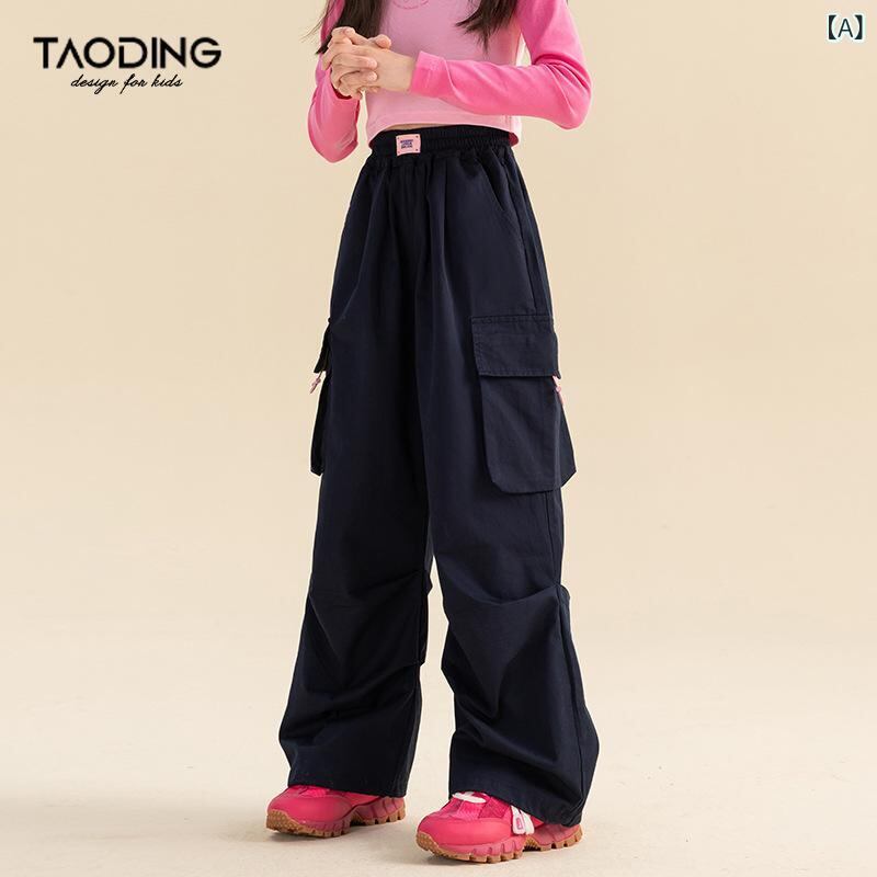 子供服 パンツ 女の子 中大童サイズ ワークパンツ ロングパンツ コットン 100% 高学年 普段着 部屋着 ガールズ ズボン ネイビー