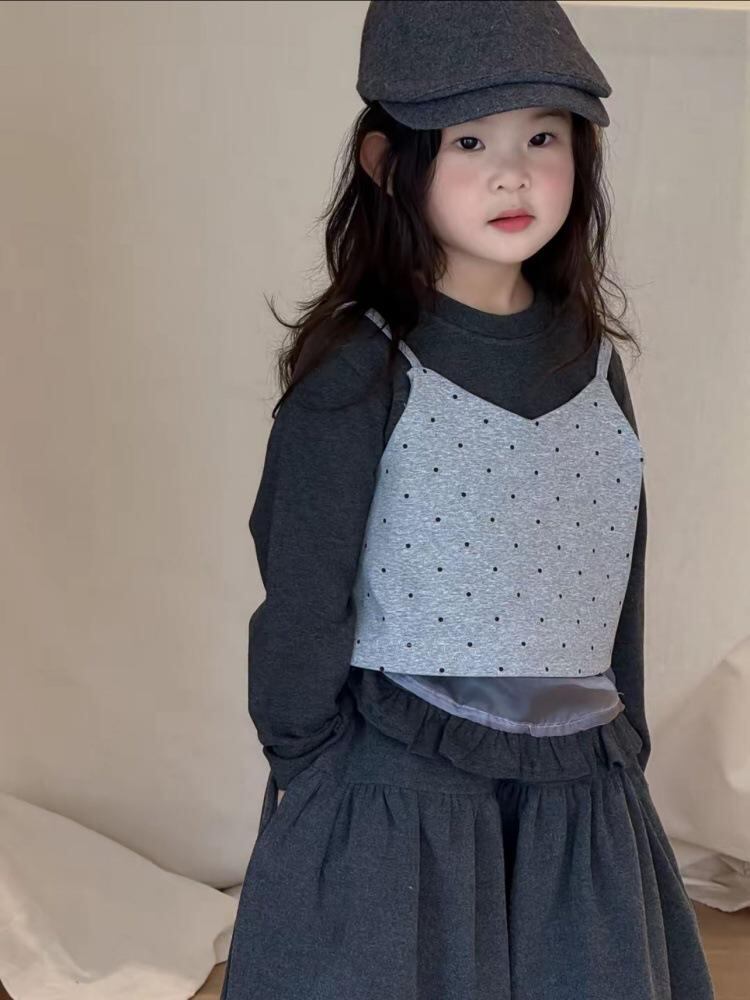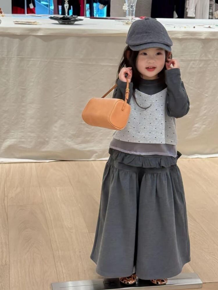 子供服 パンツ 女の子 2025年 秋冬 新作 ワイドレッグパンツ 女児 韓国風 ゆったり 快適 スカンツ ロングパンツ グレー 綿 95% 中小子供 3歳 4歳 5歳 6歳 7歳 8歳 100cm 110cm 120cm 130cm 140cm 150