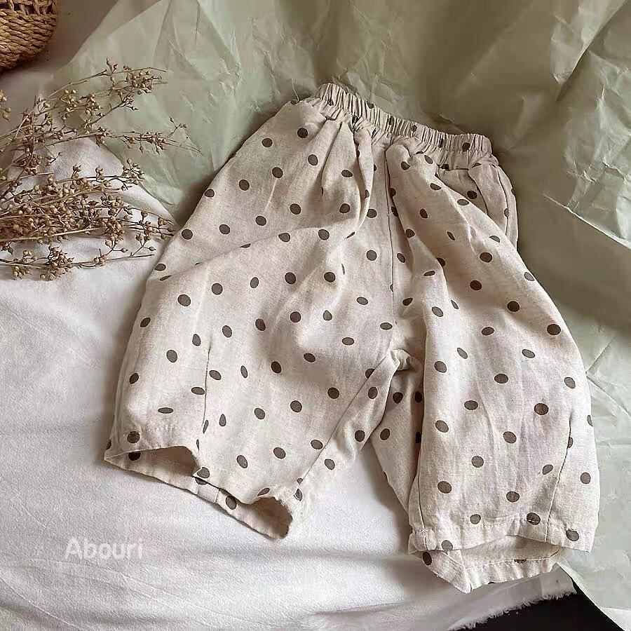 パンツ ベビー キッズ 蚊除け 麻綿 ズボン カジュアル 長ズボン 春秋 男女兼用 赤ちゃん 幼児 かわいい ドット柄 80cm 90cm 100cm 110cm 120cm 130cm