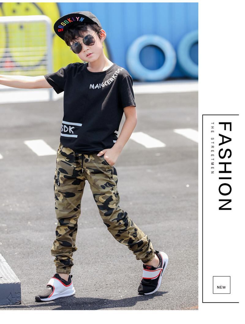 子供服 男の子用 迷彩柄パンツ ロングパンツ 春秋 中学生 高学年 小学生 伸縮性 ウエストゴム 裾絞り 普段使い アウトドア 綿