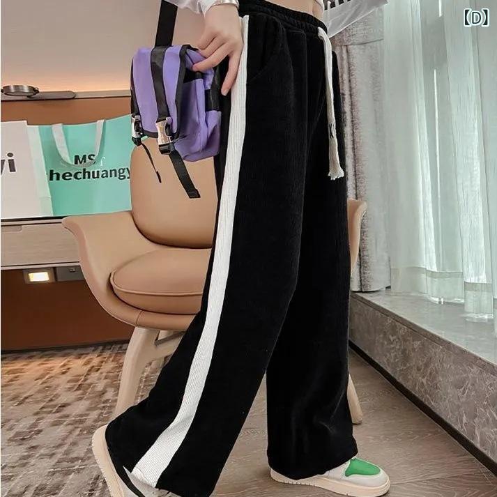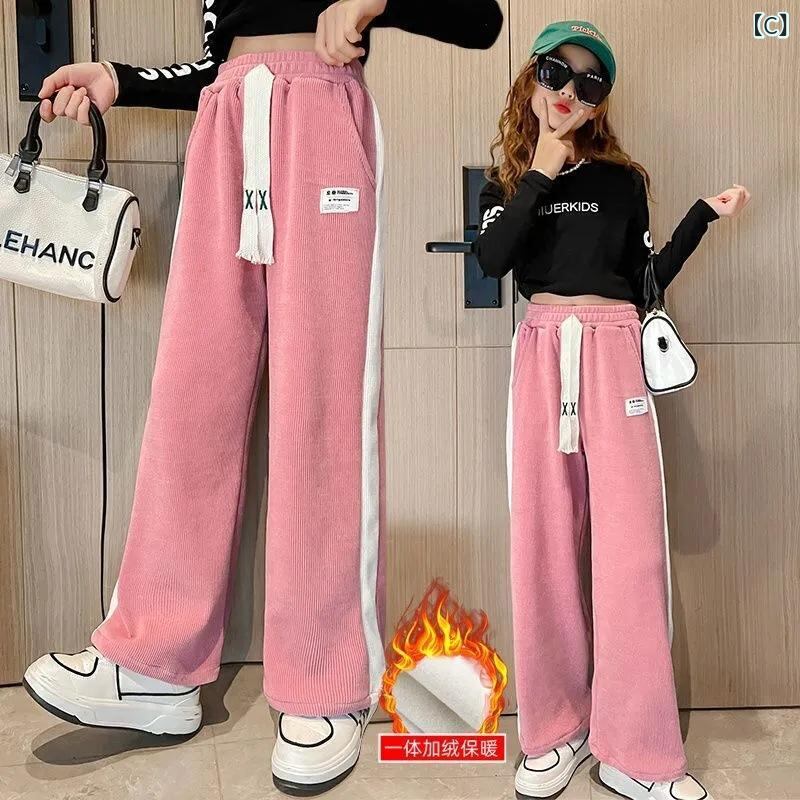 子供用 ズボン 秋冬 厚手 ニット 裾広がり あったか 伸縮性 ウエストゴム 女児 ガールズ 黒 青 ピンク系 120 130 140 150 160 170