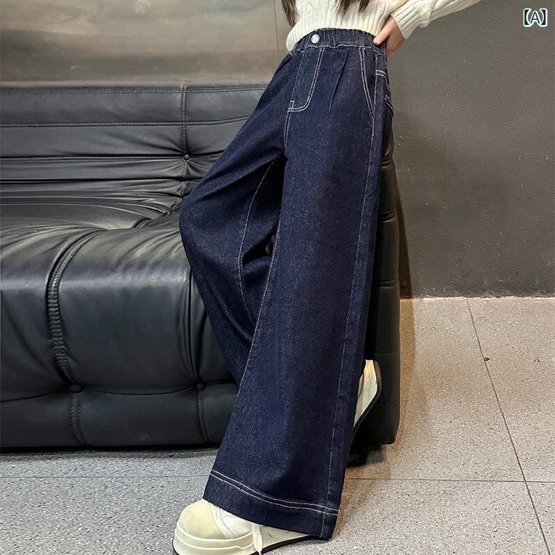 子供服 デニムパンツ ガールズ 女児 ワイドレッグパンツ ハイウエスト ロングパンツ 普段使い デイリーユース 潮范 春秋 秋 8歳以上 140cm以上 コットン75% 丹寧ブルー