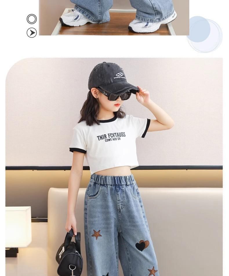 子供服 ジーンズ 女の子 ワイドレッグ デニムパンツ 春秋 高学年 女児 ガールズ 長ズボン ゆったり かわいい おしゃれ 通学着 デイリー 普段使い 綿65% 120cm 130cm 140cm 150cm 160cm 170cm