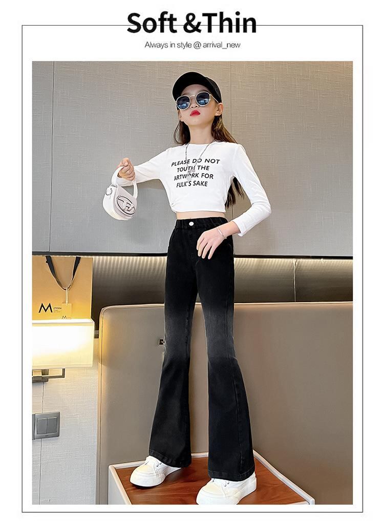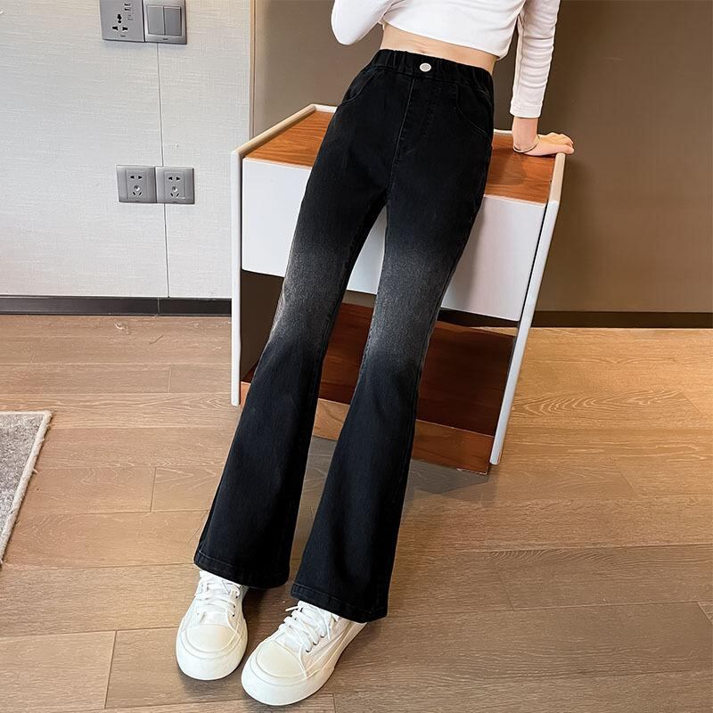 子供服 ジーンズ 女の子 デニムパンツ 韓国風 ブラック グラデーション ベルボトムパンツ 女児 ガールズ ジュニア 中学生 ロングパンツ 普段着 B類 春秋