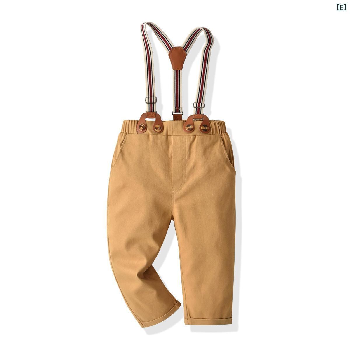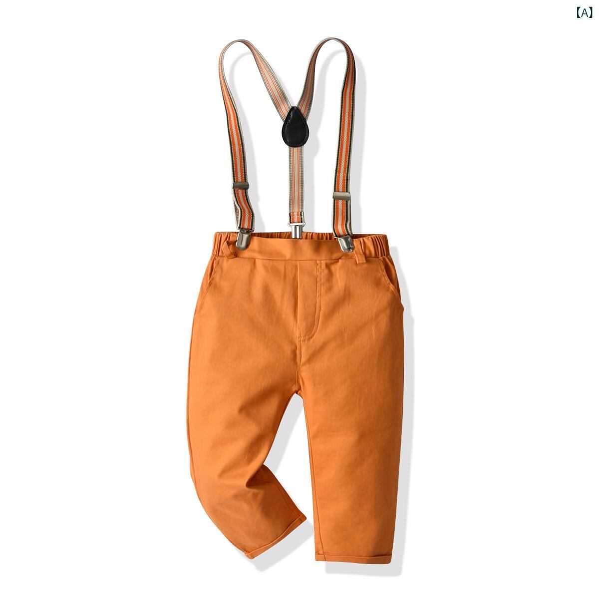 子供用サスペンダー付きパンツ 男の子 コットンパンツ ロングパンツ 普段着 春秋 90cm 100cm 110cm 120cm 130cm オレンジ カーキ ネイビー ブルーストライプ ホワイト Aクラス