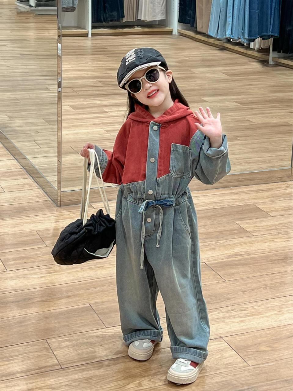 子供服 オーバーオール ゆったり デニム 切り替え 春秋 男女兼用 ロングパンツ 90 100 110 120 130 140