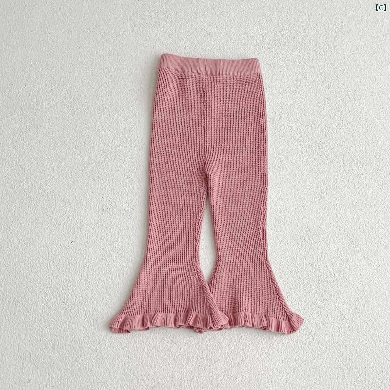 ニットパンツ キッズ 女の子 ワッフル 高弾性 フレアパンツ 毛糸パンツ 子供服 秋冬 春 かわいい 花柄 レース コットン グレー ブラウン ピンク パープル ホワイト 80cm 90cm 100cm 110cm 120cm