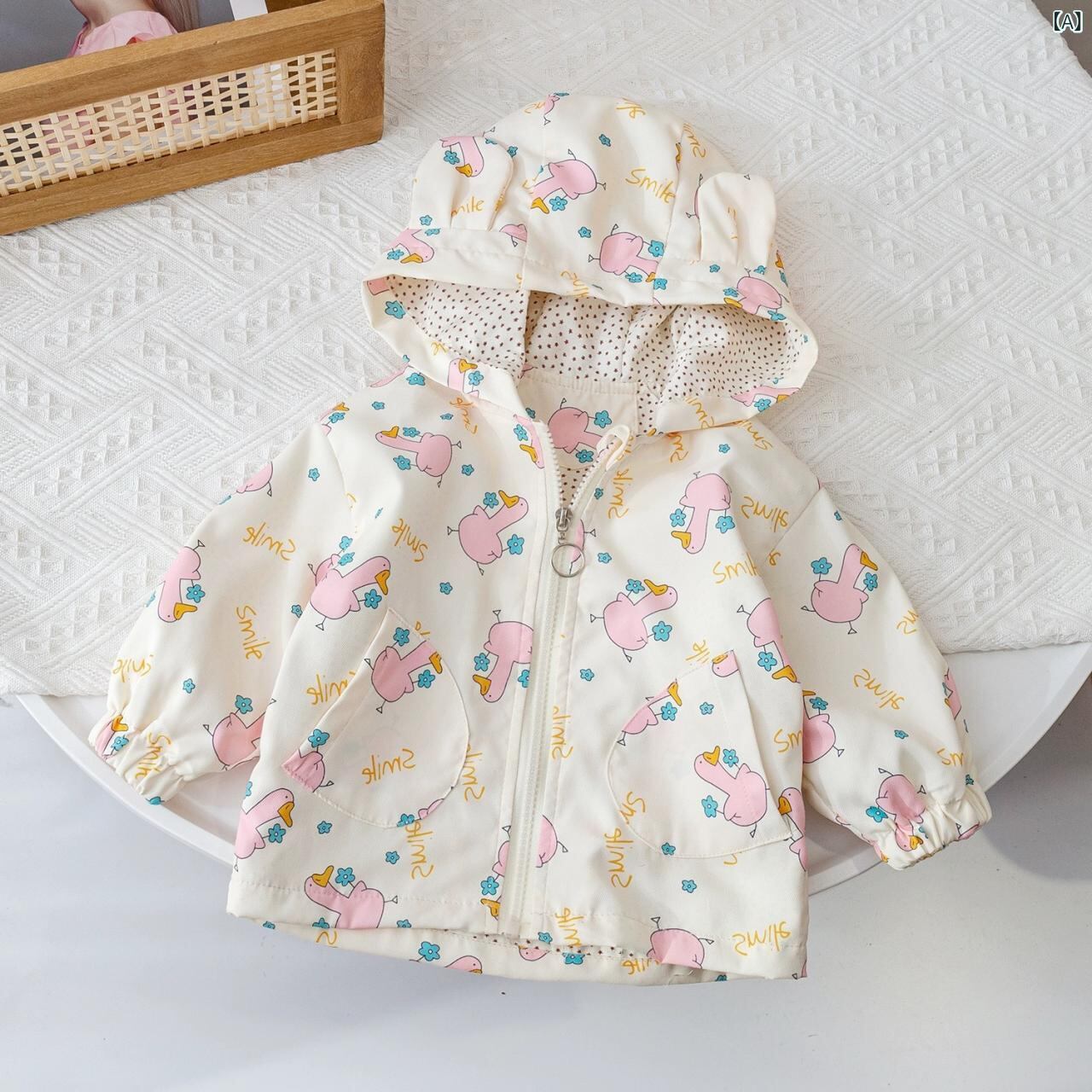 キッズ ジャケット 春秋 女の子 子供服 アウター Vネック カジュアル かわいい 動物柄 カートーン柄 長袖 パーカー 薄手 ショート丈 ピンク系