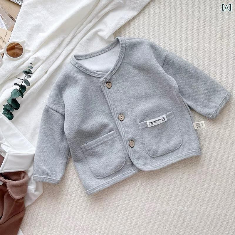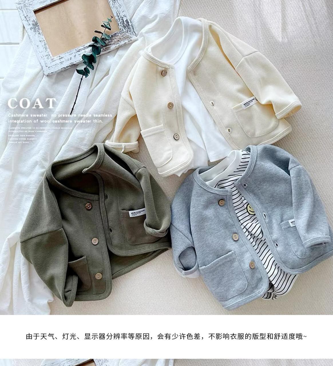 キッズ ジャケット 女の子 男の子 ベビー 子供服 アウター 長袖 カーディガン 綿 柔らかい 無地 秋 グレー グリーン ベージュ 80cm 90cm 100cm 110cm 120cm