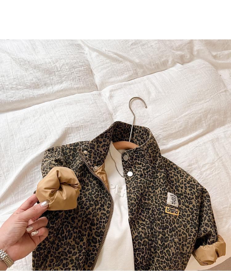 子供服 アウター ジャケット 春秋 男女兼用 ヒョウ柄 カジュアル 長袖 襟付き ショート丈 綿 ポリエステル