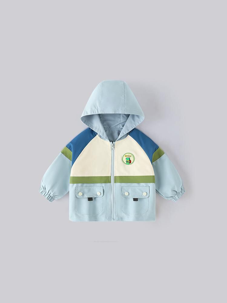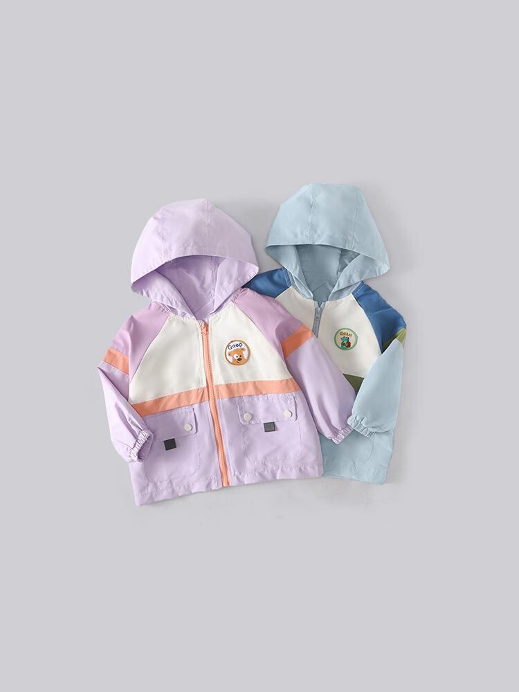 子供服 ジャケット 秋物 キッズ 中小童 パーカー 配色 ジップアップ ウインドブレーカー アウトドア スポーツ 防風 綿100% 青 紫