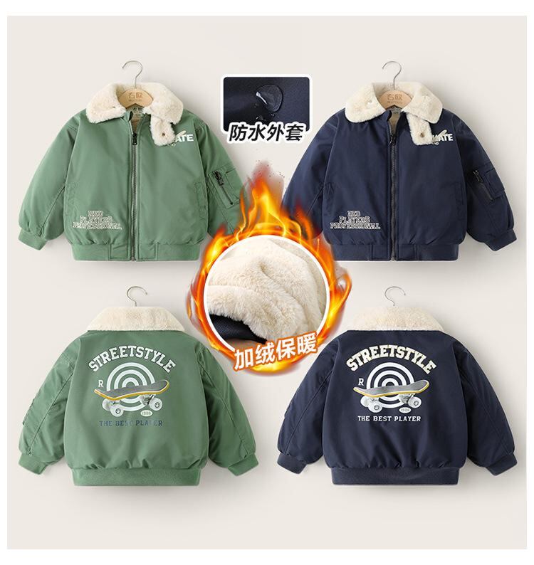 子供服 アウター 男の子 中小童 ジャケット 裏起毛 厚手 上着 防寒 普段使い 聚酯繊維 藏青色 豆緑色
