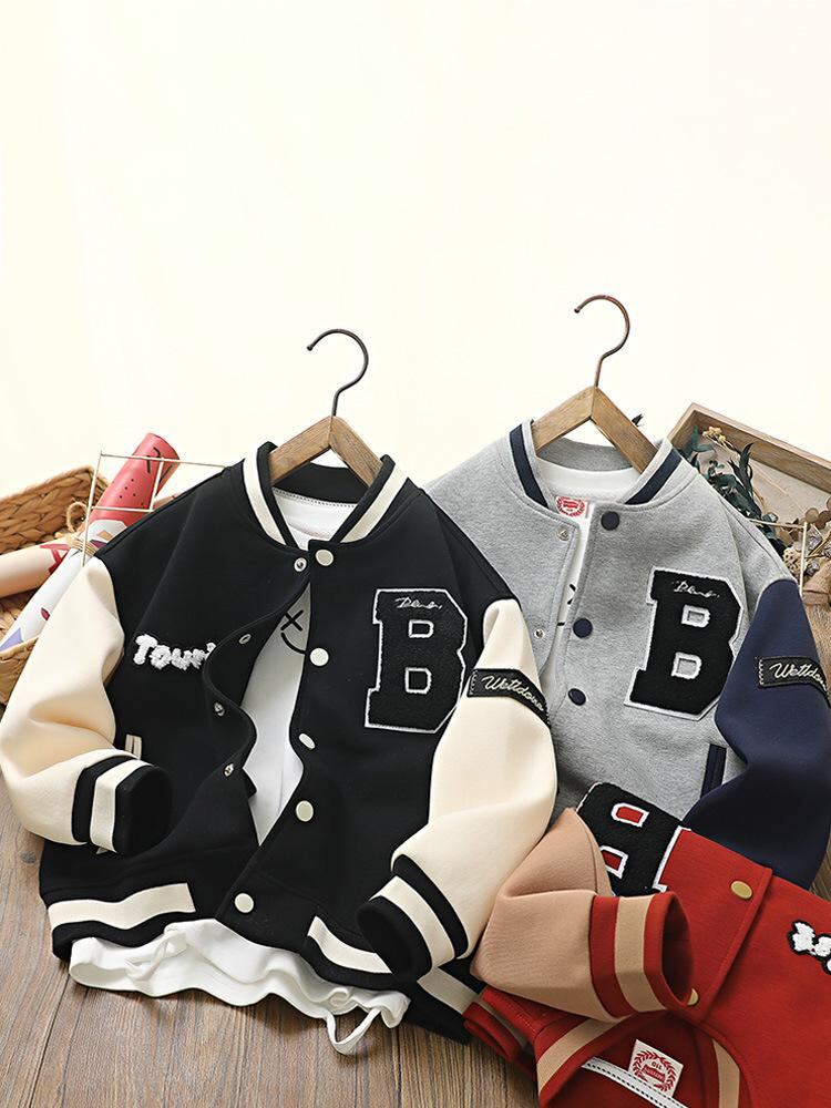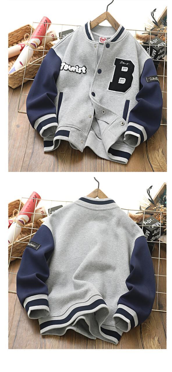 子供服 ジャケット 男女兼用 韓国風 アウター Vネック 春秋 大童 綿混紡 肩落ち ドロップショルダー トップス 野球