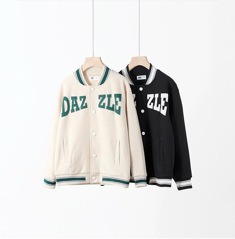 子供服 アウター ジャケット キッズ 男の子 スポーツウェア 野球 春秋 スタンドカラー ミドル丈 カジュアル アルファベット 黒 ベージュ 120 130 140 150 160