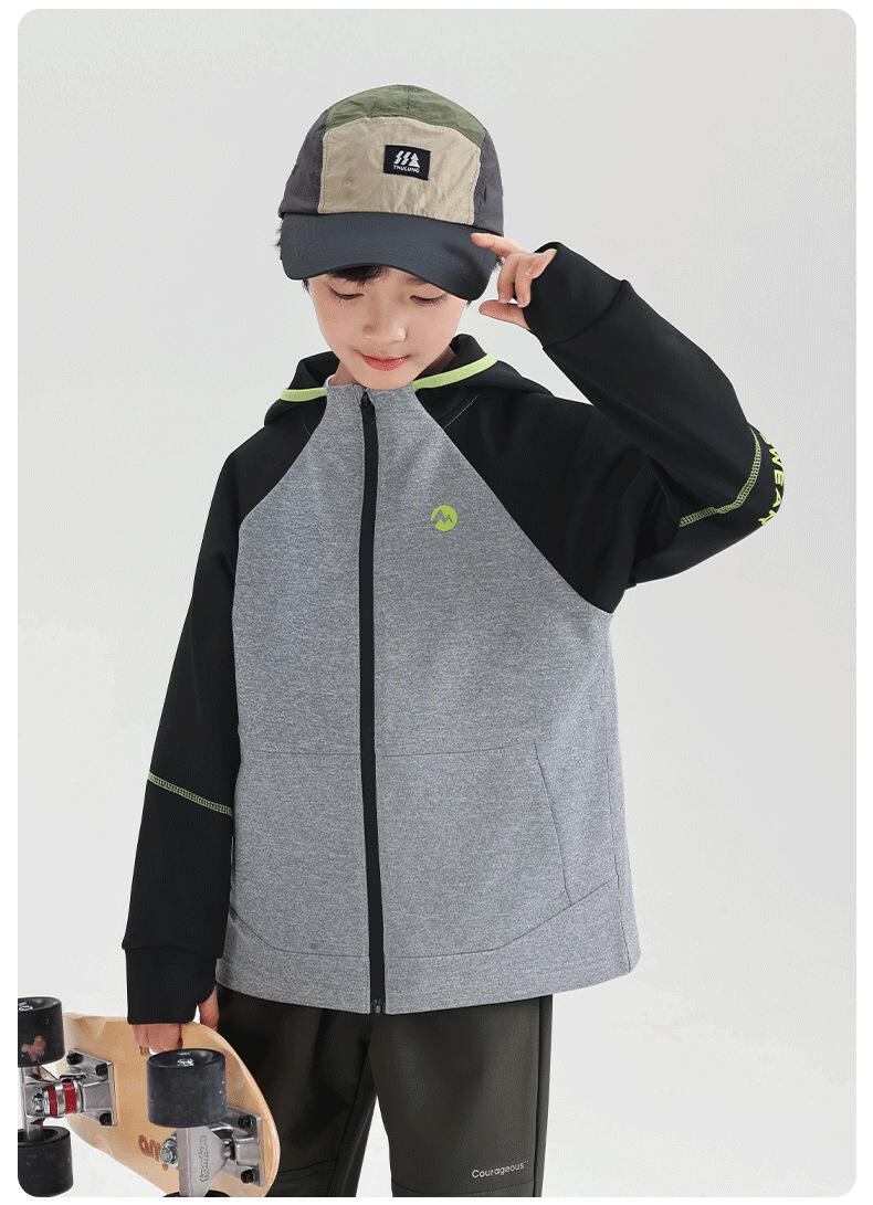 キッズ アウター 春秋 男の子 子供服 薄手 ジャケット 春 スポーティー 配色 切り替え フード付き