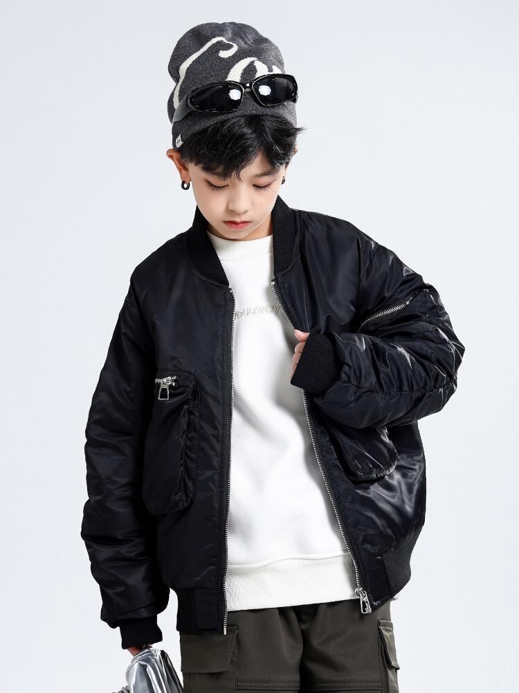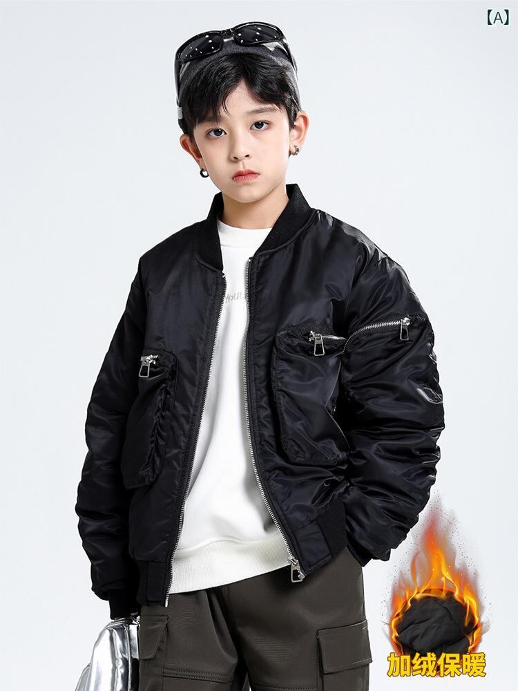 子供服 ジャケット 男の子 秋冬 厚手 中綿入り ジャンパー アウター 子供 多ポケット 野球服風 防寒 120cm 130cm 140cm 150cm 160cm 170cm