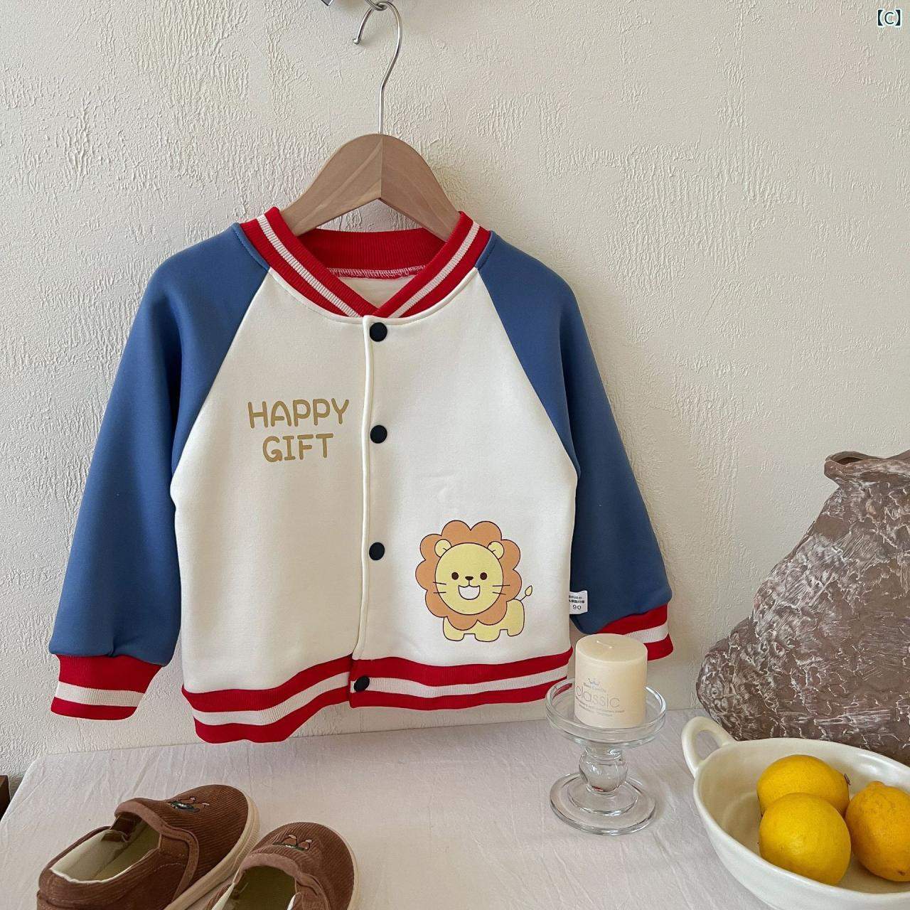 子供服 野球 ジャケット 男女児兼用 秋冬 アウター 接触冷感 保温 裏起毛 黄色いクジラ ピンクのウサギ 青いライオン