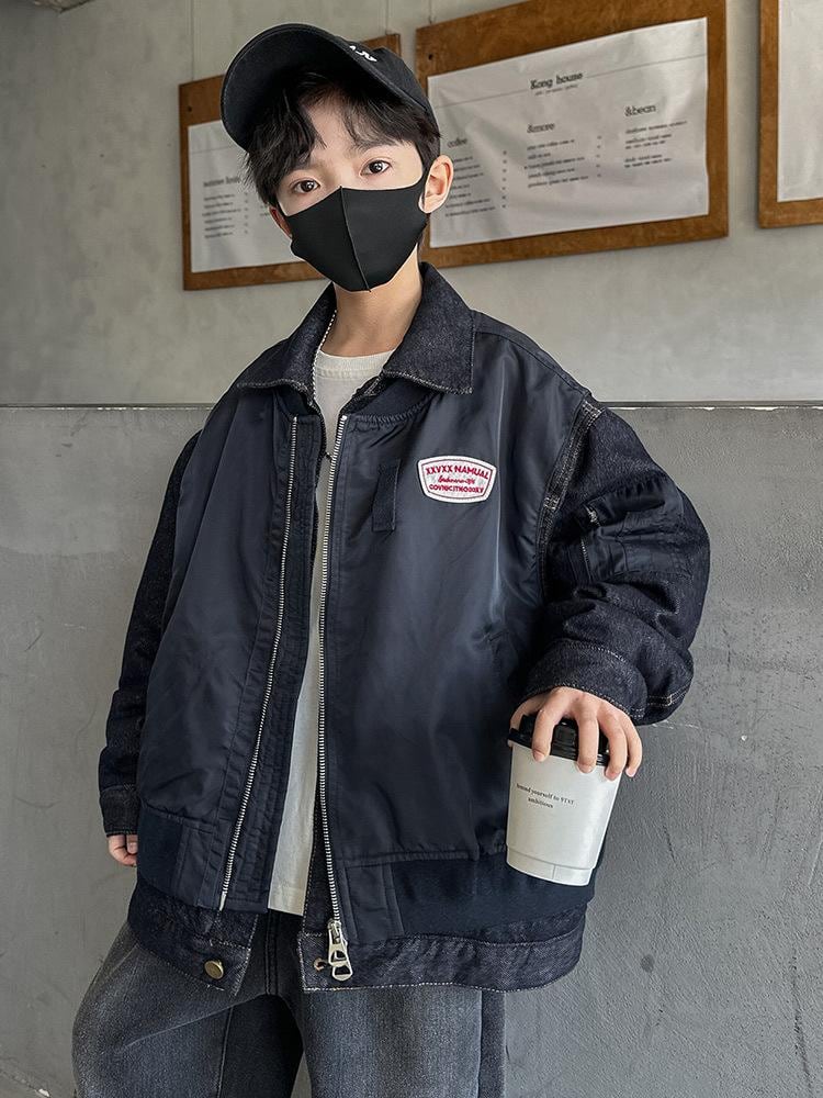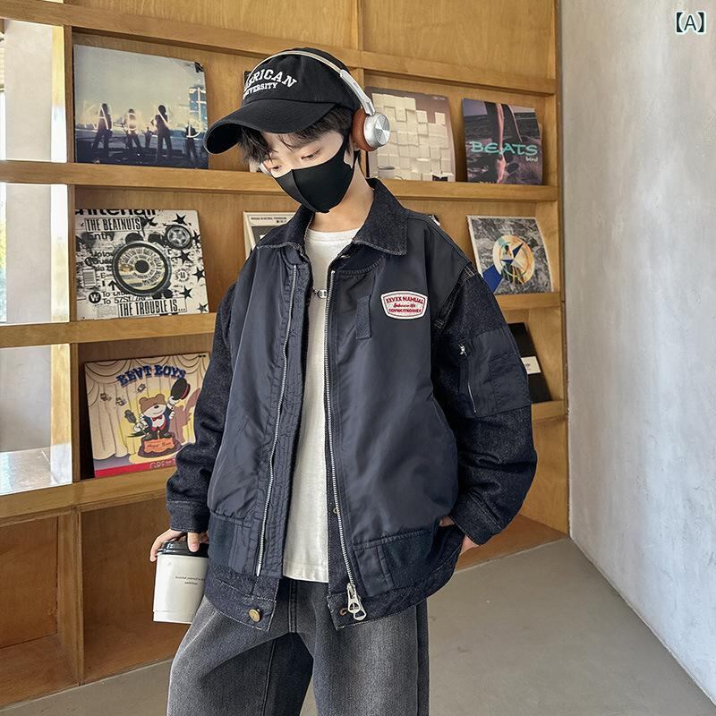 子供服 アウター 男の子 デニム ジャケット 冬 中綿入り 厚手 8歳以上 ショート丈 韓国風 ポリエステル 綿 黒 120cm 130cm 140cm 150cm 160cm 170cm