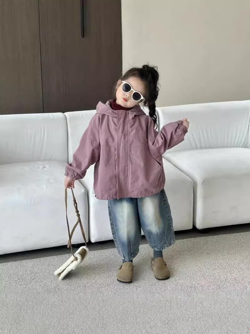 子供服 ジャケット 女の子 秋冬 韓国風 アウター レトロ フード付き ジャンパー かわいい ガールズ コート 中綿 ミドル丈 綿 デニム ジーンズ ピンク系 レッド
