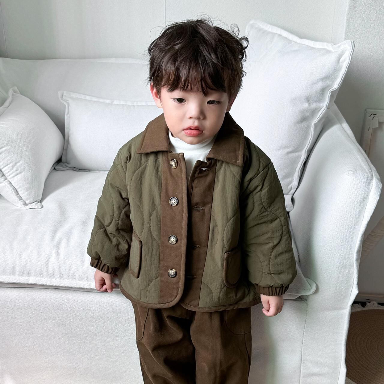 子供服 アウター 冬季 子供用 中綿入り ジャケット 男の子 幼児 レトロ 保温 厚手 折り襟 配色 かわいい カジュアル