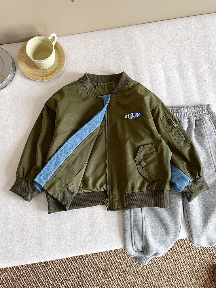 子供服 アウター 子供 個性 デニム 切り替え ジャケット 男の子 刺繍 野球服 ジャンパー 春秋