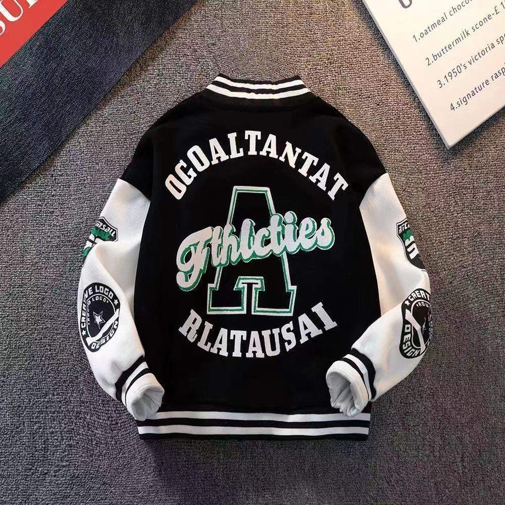 キッズ ジャケット 秋冬 子供服 男の子 Vネック ストライプ アウター ジャンパー ブルゾン 野球服 120cm 130cm 140cm 150cm 160cm 170cm ブラック グリーン