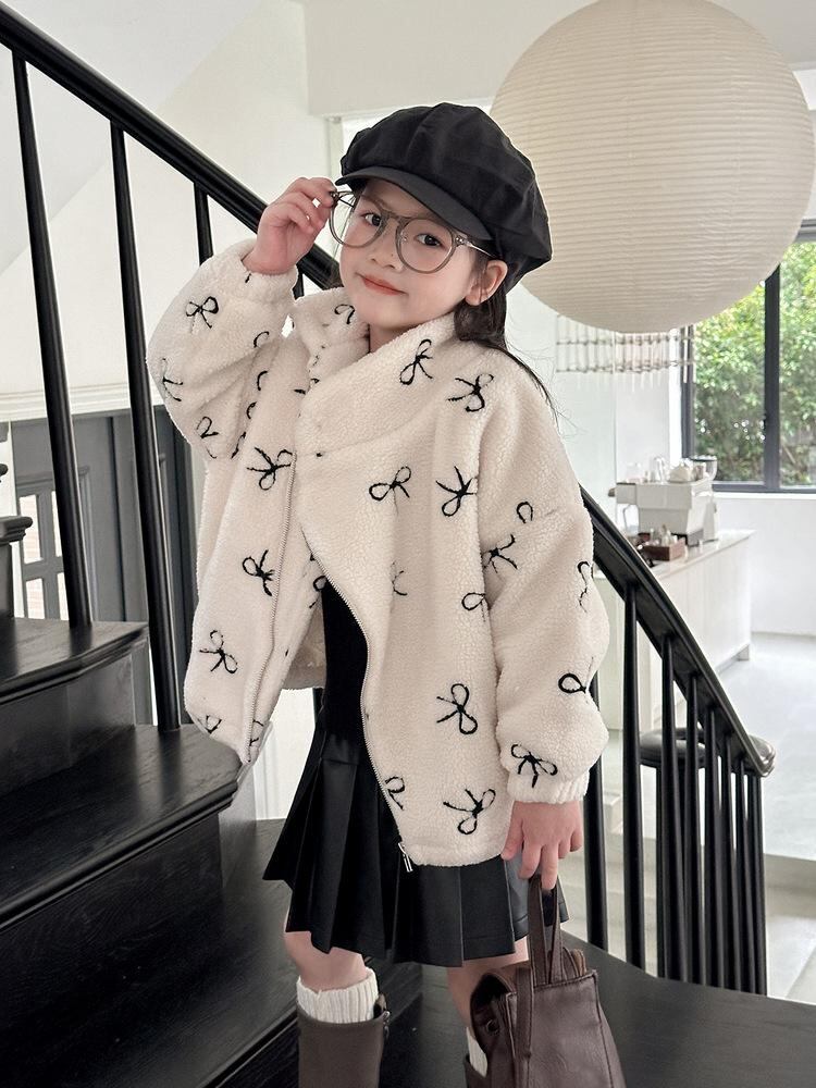 子供服 女の子 アウター ボアジャケット コート 秋冬 厚手 フリース 襟なし 丸首 かわいい 暖かい ゆったり 通園 通学