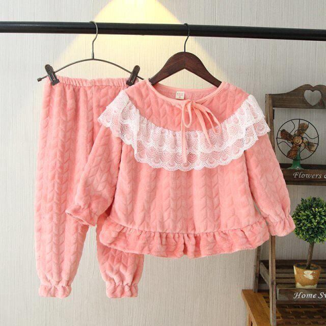 子供服 パジャマ 女の子 秋冬 フランネル 厚手 サンゴフリース 母娘 ペアルック 親子ルームウェア 上下セット ストライプ あったか 保温 部屋着 かわいい 工装スタイル 75 80 90 100 110 120 130 140 148 155 162