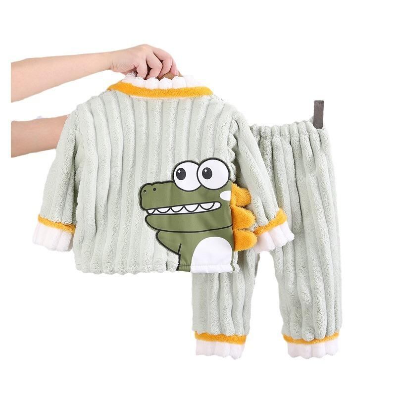 子供用パジャマ 上下セット フランネル 暖かい 男の子 ベビー キッズ 幼児 部屋着 寝巻き 厚手 秋冬 かわいい 柔らかい グリーン グレー