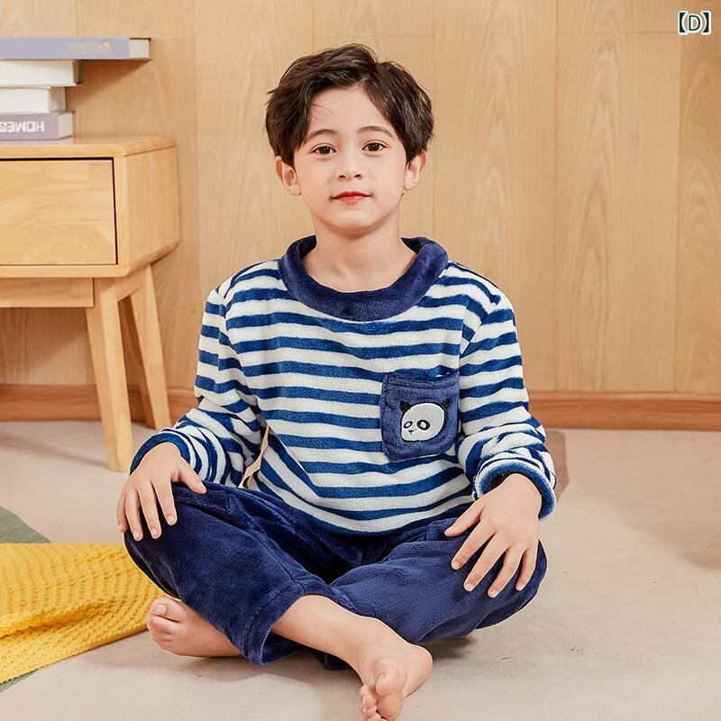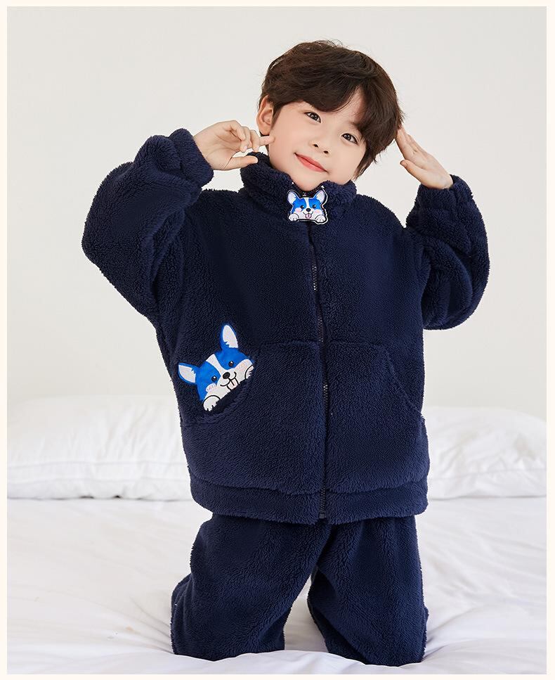 子供用パジャマ 秋冬 子供 厚手 フランネル 暖かい かわいい 上下セット ルームウェア グレー 紺色 クマ柄 ポリエステル