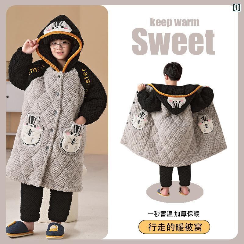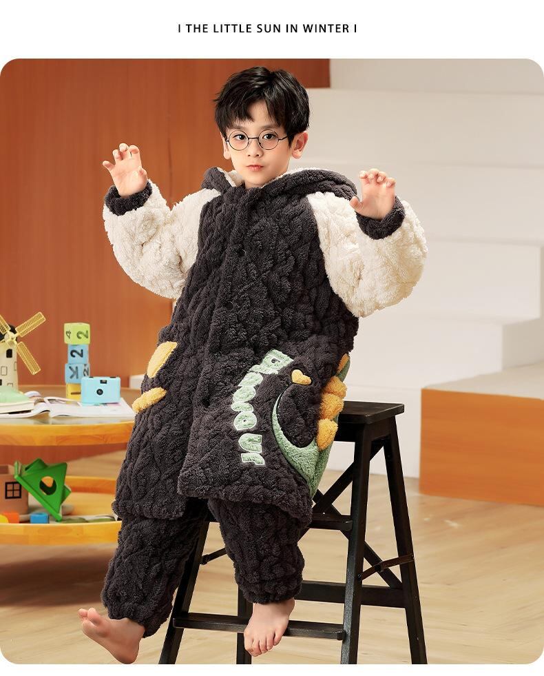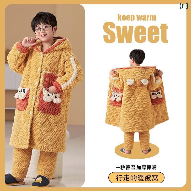 子供用 寝間着 男の子 冬用 フリース 厚手 三層 あったか バスローブ 男児 ロング丈 サンゴフリース 部屋着 パジャマ