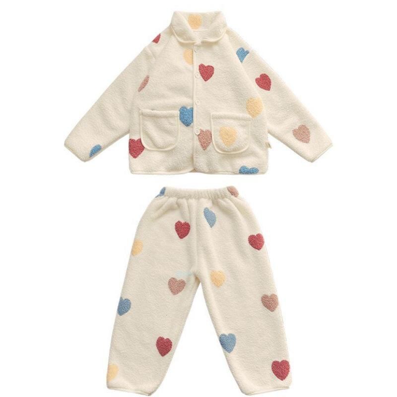 子供用パジャマ 女の子 秋冬 厚手 フランネル 珊瑚マイヤー かわいい ルームウェア 上下セット あったか 部屋着 長袖 寝巻き 冬用 春 秋 ゆったり 90 100 110 120 130 140 150 160 水玉