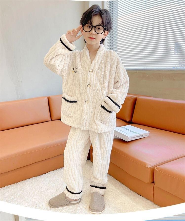 子供用パジャマ 男の子 秋冬 厚手 フランネル 中大童 小学生 男児 前開き ルームウェア 部屋着 寝巻き ポリエステル プリント ベージュ グレー