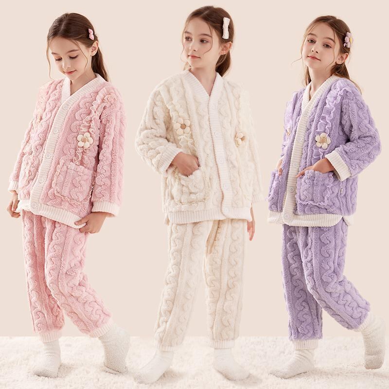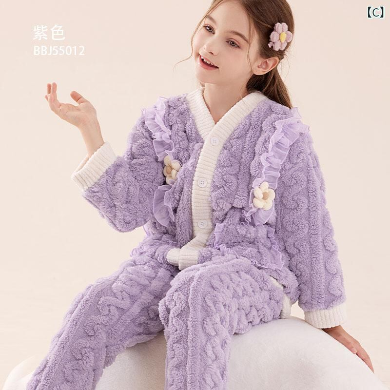 子供用パジャマ 女の子 珊瑚フリース 秋冬 厚手 女児 赤ちゃん フランネル 大キッズ ルームウェア セットアップ 120 130 140 150 160 170 あったか 快適 柔らかい ポリエステル ピンク ベージュ パープル